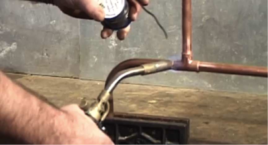 Once the pipes are assembled as required, use the blowtorch to bring the copper up to temperature.