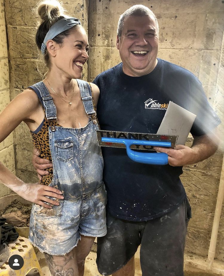 Emma and one of our Plastering Instructors Jo posing with a little customised gift made for Jo