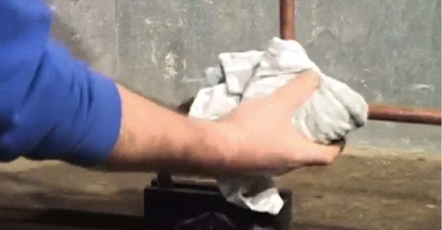 To begin, secure the pipe to be joined in a vice. If you don’t have a vice, then use a heatproof surface. Never solder without the proper protection.