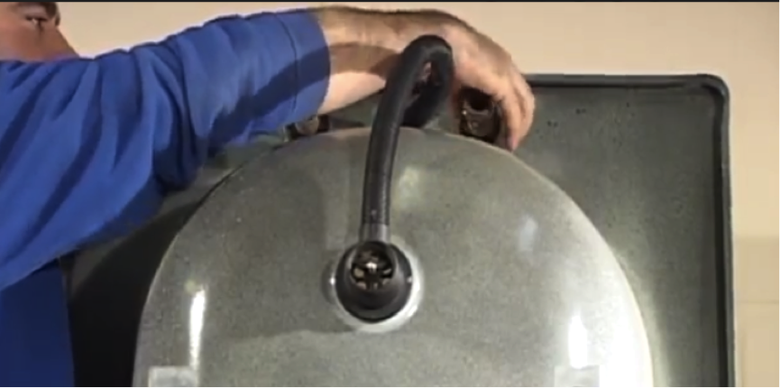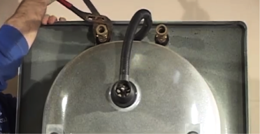 Then attach the back nuts and tighten them by hand. Take your tap spanner and set the end to tighten. Lock around the back nut and tighten until the taps are firmly screwed in place.