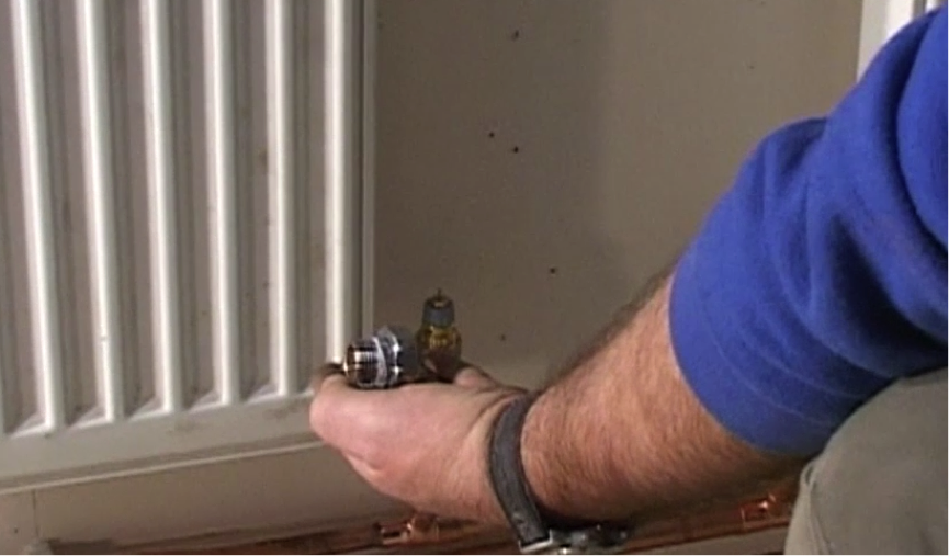 Thermostatic valves are fitted to the valve on the side of the radiator. Here’s our handy guide on how to remove the radiator and fit the new thermo valve. This will give you more control over the temperature in your room. It’s fairly straightforward but there are a few tricky connections to negotiate and you’ll have to make sure your system is air tight before you start..