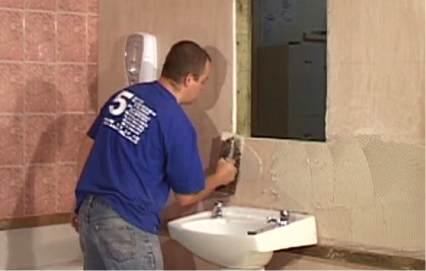 Step 2. Tiling behind the sink