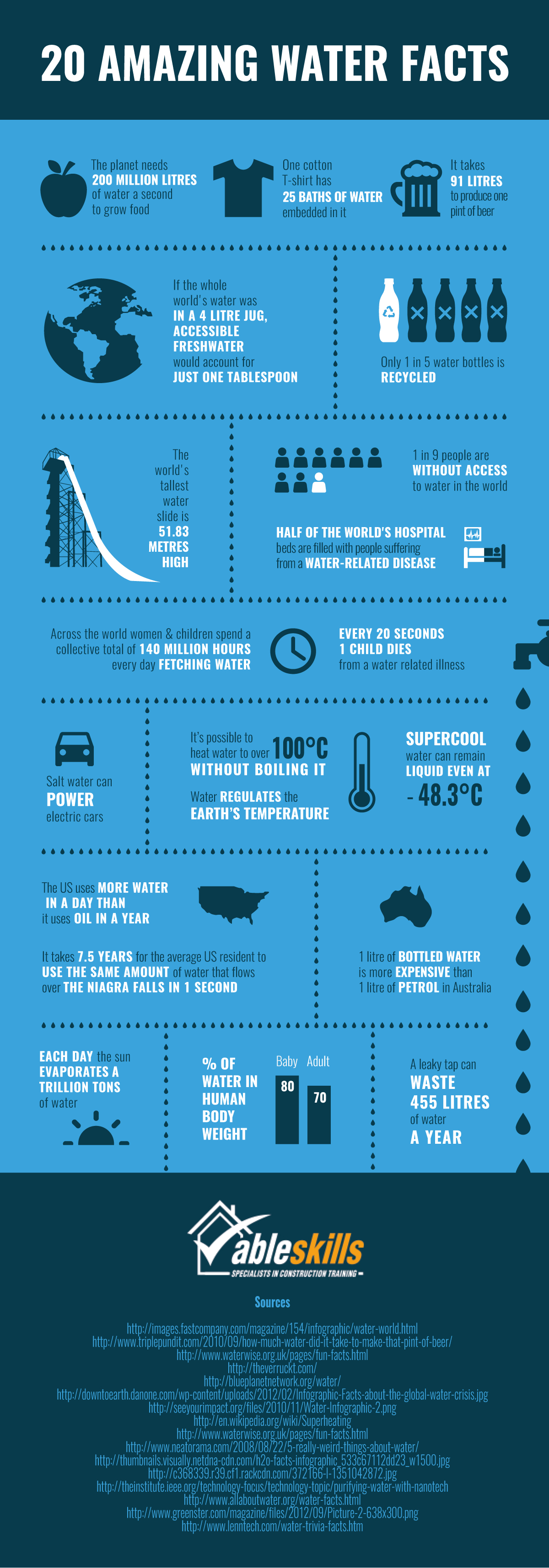 <a href="https://www.ableskills.co.uk/water-facts/" target="_blank"><img src="https://www.ableskills.co.uk/water-facts/img/infographic.jpg" width="500" height="1423" /></a><br /><span style="font-size: 12px;"><a href="https://www.ableskills.co.uk/water-facts/">View Interactive Version</a> (via <a href="https://www.ableskills.co.uk/">Able Skills </a>).</span>